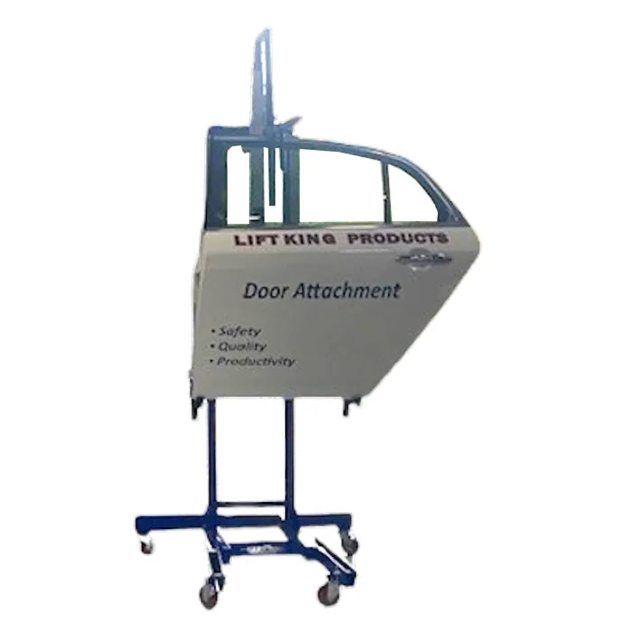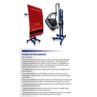 The Lift King LK5200 Door Attachment comes with everything needed to quickly connect to the Main Component. This attachment allows one technician to perform the removal or installation of doors on cars, trucks, semis, and all types of automotive and commercial vehicles such as sprinter doors.