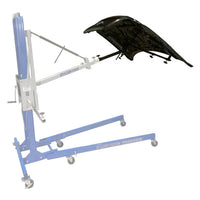 This application increases labor productivity and mitigates the risk of injury. This is the safest and most efficient way to remove or install automotive and light truck hoods of all sizes; large and small.