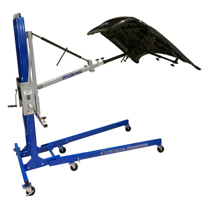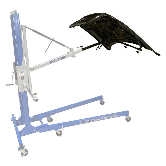 The Lift King LK5400 Hood Attachment comes with everything needed to quickly connect to the Main Component without needing any tools. This attachment allows one technician to perform the removal and installation of hoods on cars, trucks, SUVs, vans, and other automobiles.Lift King LK4000 Main Component Not Included