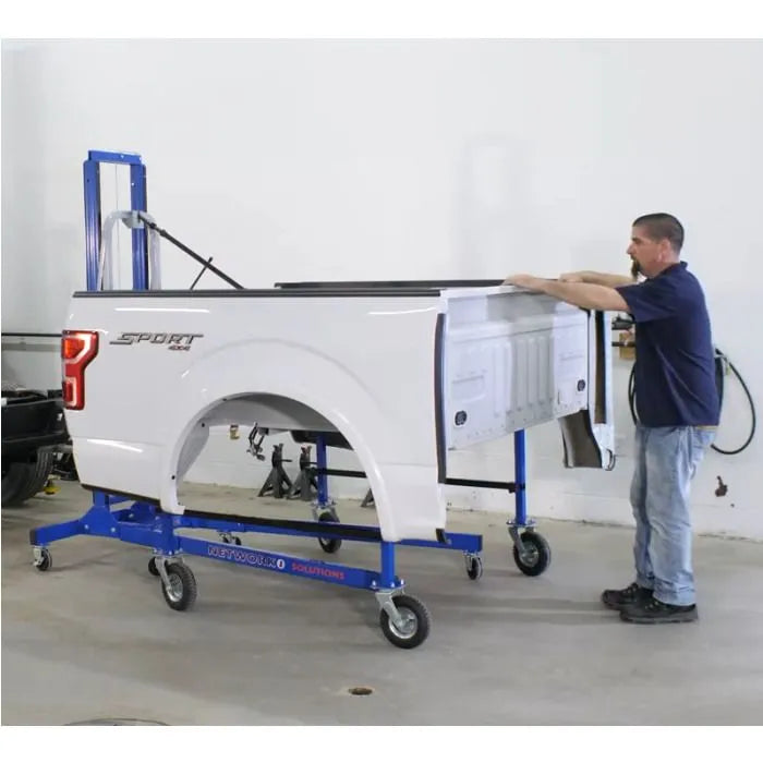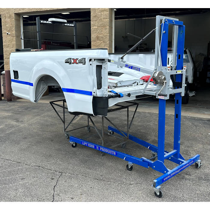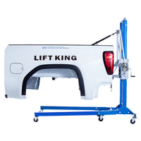 - Key Benefits - One technician, one tool. No need for four technicians to do the job of one. Avoid human strain, the loss of a good employee due to injury, worker compensation claims, and potential legal claims The average pickup bed weighs between 275 lbs. and 350 lbs. With the Lift King, anyone can remove or install a pickup bed effortless with no human lifting. Improve quality by avoiding the possibility of damage to the customer vehicle because a technician slipped and the box hit the cab (little to no clearance between the box and cab). Collision repairs can be performed while the damaged item remains on the lift. The lift will adjust the item to the best working height for the technician.