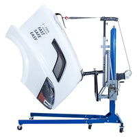 The Lift King Light & Heavy Duty Combo Package contains everything necessary to operate your Lift King, including the Main Component, Box Attachment, Bushing Kit, and Semi Hood Attachment, allowing you to remove and install Semi Hoods and Pickup Boxes safely and efficiently with one operator. The Semi Hood Attachment allows additional tilting mobility for body repair and painting. Our lift will make taking any Semi Hood or Pickup Box off safely and quickly and allows other techs to stay focus on their job as no help is needed using the Lift King.