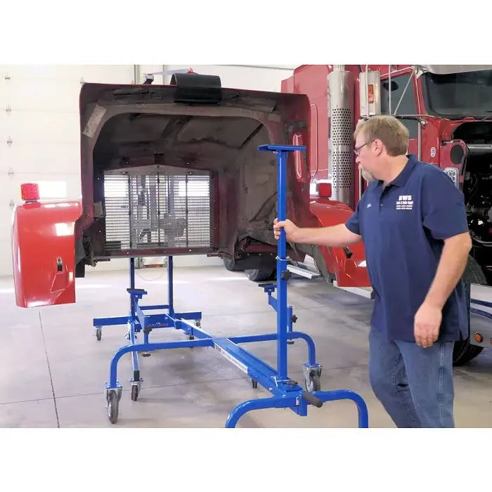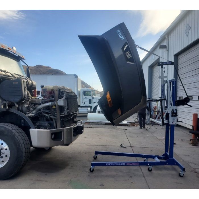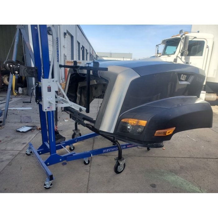 One technician can remove or install a semi hood OR a bus front by themselves eliminating the need for three or four more technicians to stop their current task to help. We have attachments for cab doors, trailer doors, bumpers