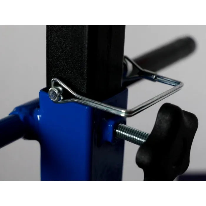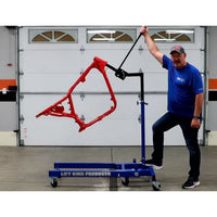 The Lift King MC7000 Motorcycle Frame Stand comes with everything needed to quickly mount a motorcycle frame without needing any tools. It is designed to secure the motorcycle frame in the best position for stability with it's adjustable height and adjustable frame angle. The MC7000 folds up for convenient storage and features steel construction, six casters, and a durable powder coat finish.