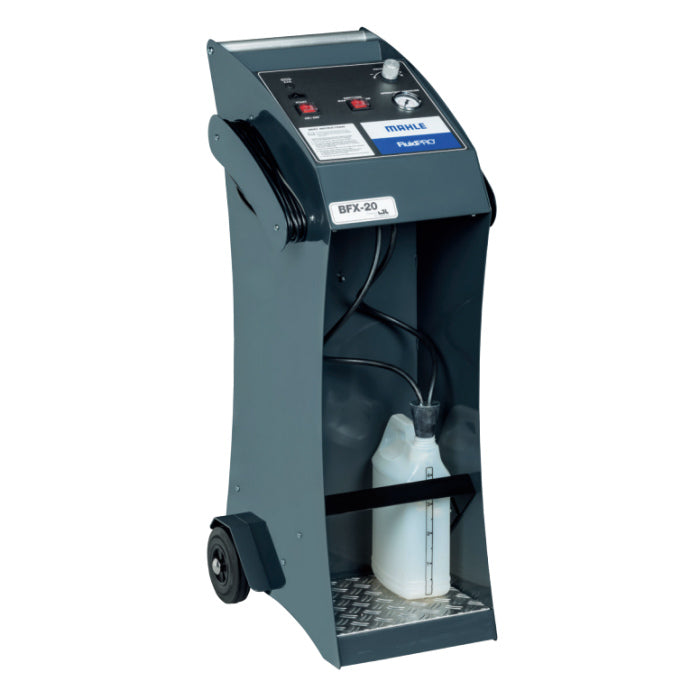 The MAHLE FluidPRO BFX-20 Brake Fluid Flush and Exchange System delivers complete brake fluid exchange in a simple one operator process, unlike most competitive models. The BFX-20 is compatible with both ABS & non-ABS brake systems and it is easy to operate with service times of 10 minutes. It features pulsating fluid flow to pressurize air bubbles out of the braking system and a handy removable tray for adapter and tool storage. This brake flush system is backed by the MAHLE name for superior quality and comes with a (1) year parts and labor warranty.
