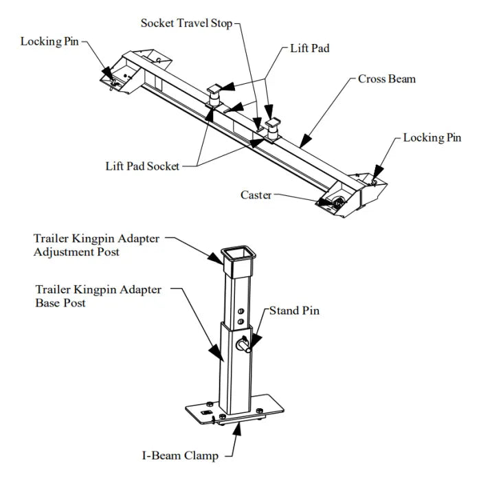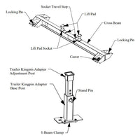 The MAHLE CAD-120ML Trailer King Pin Adapter ensures stable and secure lifting of trailers with kingpins when using the CAD-CB Cross Beam Adapter with wireless mobile column lifts.