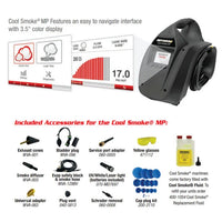 - The CoolSmoke MP delivers dense smoke with UV dye across its entire operating range of 0.5 PSI in EVAP mode/ 3-60 in HP mode, unlike competitive products that must reduce smoke output at higher pressures due to limitations in their technologies.