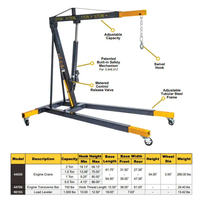 Omega 44020 2-Ton Hydraulic Engine Crane
