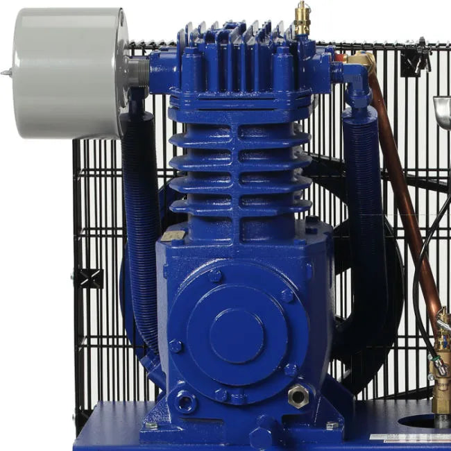 - Finned-copper-tubed intercooler dissipates excess heat from the first stage of compression to the second-stage, helping to eliminate carbon build up in the head and increase valve life