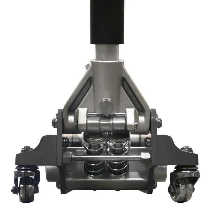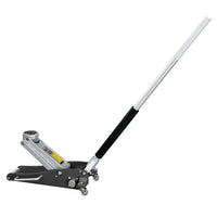 The RFJ-3000AL is a dependable, lightweight floor jack crafted out of aircraft-grade billet aluminum. Reaches full height in just four quick pumps! This aluminum racing jack by ranger is one of our most popular products. Why? Because it is reliable, dependable, and it gets the job done, at a very reasonable price. Yes, you will find a cheaper aluminum jack out there. We've even seen some that are under $50. But if you want one that will last, one that will hold up years after you purchased it, then you should consider the RFJ-3000AL. This lightweight floor jack is crafted out of billet aluminum (aircraft grade). Plus, it's quick. It can get you up to full height in just 4 pumps.The Ranger model RFJ-3000AL Aluminum Quick Jack is made of the strongest aircraft alloy aluminum available. Not only does it weigh in at a feather-light 41 lbs., but it gets any race car or hotrod a full 17.5" off the ground in just a few pumps of its knurled aluminum handle. With a low 3.5" profile front-roller, the RFJ-3000AL is perfect for working on ground-hugging, low ground-clearance performance vehicles. We all know that race tracks are fast-paced environments. When a tire needs to be swapped or you need to reach the undercarriage to do a little last-minute wrenching, there are two problems that come up. One, you need a jacking method that’s low-profile and will safely reach your jack points. Two, floor jacks and stands are portable, but that doesn’t mean they’re fun to lug around. This aluminum jack is as lightweight as it efficient in fast-paced or high stakes situations. It’s also ideal for home garages. Simply put, a lighter, more powerful floor jack keeps you working smarter at all times. You’ve heard a lot about how aluminum is changing the game. Aluminum trucks are light, powerful and capable of towing more weight than older steel-frame models. Likewise, aluminum floor jacks are sure to catch fire (not literally, of course) in the near future, even more than they already have. These lighter designs are safer and more ergonomic for the user, taking the hassle out of any job. The RFJ-3000AL is a revolutionary garage floor jack we know you’ll love in your shop or garage.