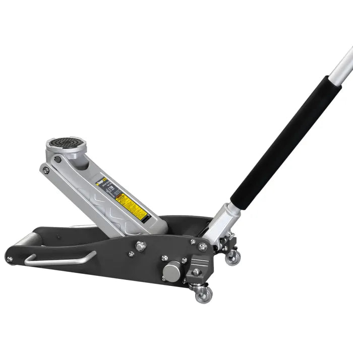 The RFJ-3000AL is a dependable, lightweight floor jack crafted out of aircraft-grade billet aluminum. Reaches full height in just four quick pumps! This aluminum racing jack by ranger is one of our most popular products. Why? Because it is reliable, dependable, and it gets the job done, at a very reasonable price. Yes, you will find a cheaper aluminum jack out there. We've even seen some that are under $50. But if you want one that will last, one that will hold up years after you purchased it, then you should consider the RFJ-3000AL. This lightweight floor jack is crafted out of billet aluminum (aircraft grade). Plus, it's quick. It can get you up to full height in just 4 pumps.