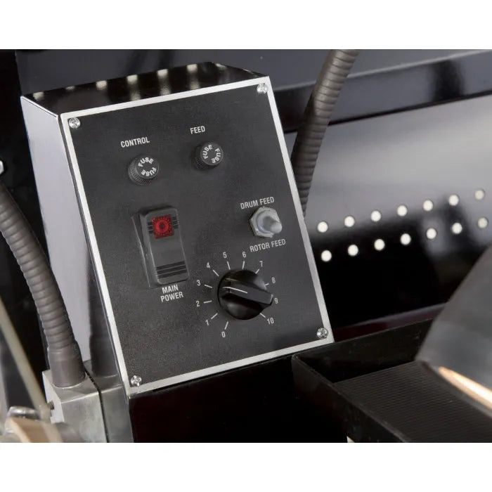 - Separate motors on the drum and rotor feed help maximize the main motor's efficiency