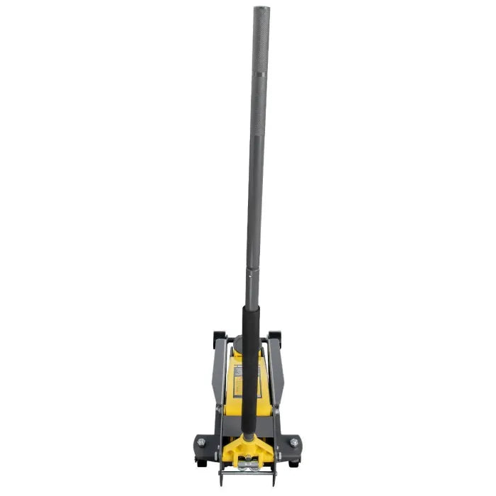 The Ranger RFJ-3T 3-Ton Professional Series Racing Style Plunger U-Joint Floor Jack is a 3-ton capacity super-duty garage floor jack that offers a 21" max rise and a low-profile design that's perfect for professional shops and home garages. The specially designed flanged edges will grip the frame or lift point of your vehicle, preventing slippage and maximizing safety. Fits most light-duty lifting applications. The power and rugged build of this model is obvious from its look-and-feel, but it's the built-in safety features that really set this jack apart from the rest. Double-sealed hydraulics and a sturdy steel construction help to protect your investment, while the clever universal-joint release system and roller cam plunger assembly make operation a breeze.