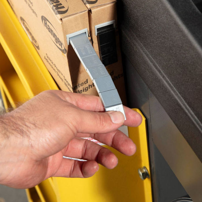 - Side Shelf With Built-In Weight Dispenser Accommodates Ranger Quick-Peel™ Adhesive Tape Weight Convenient Bulk Rolls