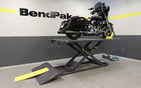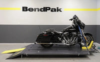 If you're looking for lifting capacity and capability, this motorcycle lift delivers. A long list of features includes an extended work platform, 12‐gauge steel construction, built‐in retractable swivel casters, reversible bolt‐on side decks, a cheater ramp, automatic safety locks, support poles, removable tool and parts tray and a single hydraulic lifting cylinder and retracting rear wheel deck. A secondary drop‐in deck features rollers that makes easy work out of wheel rotations and turn your motorcycle lift platform into a motoring test simulator.Our reputation is one of not only legendary products, but legendary technical support. We're obsessed with making sure that you are a BendPak / Ranger fan for life, so we give you the very best after-sale support in the world. It's both our pleasure and our specialty. The moment you purchase a product from BendPak / Ranger, you became part of a family of folks who have a passion for automobiles and service equipment, just like you. We're just happy to take care of our own and committed to making it as easy as possible to solve your equipment issues. That being said, this motorcycle lift is made to last without issues down the road. With BendPak's award‐winning Certified Service™ program, it's step 1 and you're done.