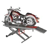 With a 1,000-lb. lifting capacity, RML-600XL lift platform brings professional ease to any motorcycle or ATV service job. Includes side extension, front extension, wheel vise and approach ramps. RML-1100 Scissor Jack sold separately.