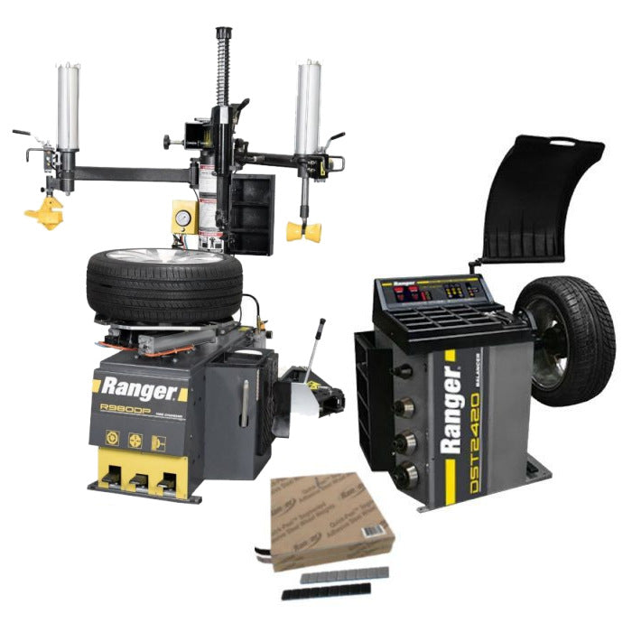 The Wheel and Tire package from Ranger includes a Tire Changer, Wheel Balancer and convenient twin-pack of self-dispensing steel tape weights. Each Wheel and Tire package is savings-packed at special bundle pricing so you get everything you need at just the right price. Increase your wheel service capacity, or simply replace your old worn out machines with modern technology. Your future wheel service profits have never looked so good. R980DP-L+DST2420+WEIGHTS 5140430