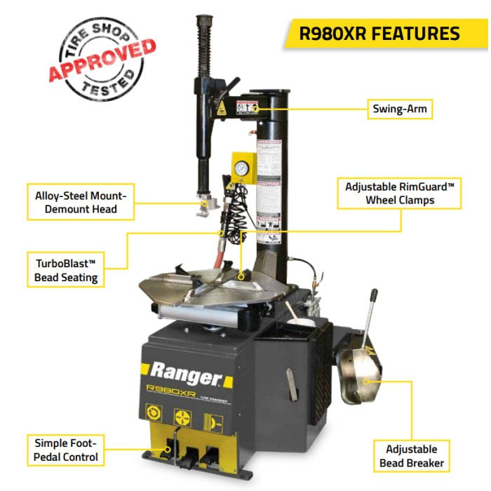To get the space-saving benefits of the Ranger R980AT without the addition of an assist-tower, the R980XR is a perfect alternative tire changer. It's perfect for general repairs on a wide range of tires, including racing tires, pickup trucks and tire beads that won't put up much of a fight. A host of innovations make the new NextGen series, R980XR one of the most durable, and ergonomically engineered tire changers ever.