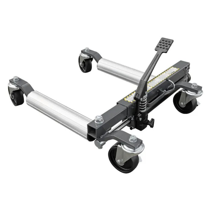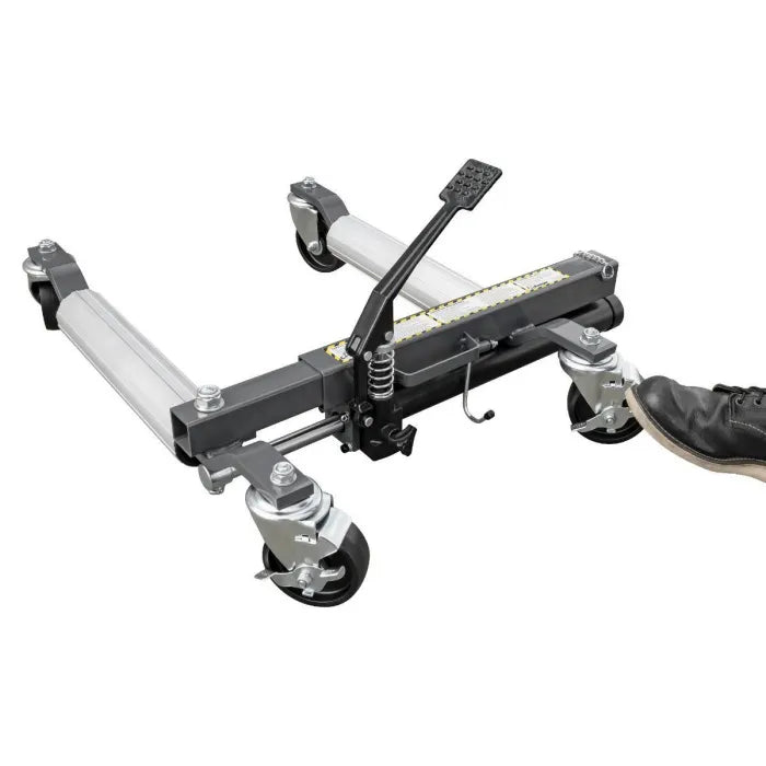 The Ranger RCD-1500EX extended-length GoCart car dolly offers the same 1,500 lbs. weight capacity as the standard-length version, but it holds tires from 19" to 39" in diameter. This ability to secure larger tires means a set of GoCart car dollies will let you move larger, light-duty trucks and SUVs. With multiple locks on each dolly, including both a sliding pin and a hook latch to restrict the possibility of dolly movement while you roll your vehicle, it’s extraordinarily safe to move raised vehicles. The front wheels of the dolly also include an on/off lever, so the wheels cannot move once you need to lower the car and remove the dollies from the vehicle wheels.
