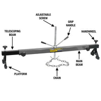 The RST-500ES is designed for unparalleled adaptability: threaded adjustable chain hooks and telescoping side foot pads adjust to all manner of engine compartments. Wheel well to wheel well support provides a solid foundation for up to 1,500 lbs. of engine while you're working on the transmission or dropping a sub-frame. This engine support is both easy to use and saves real time, every time. And we all know that in this business, time means money.Features & Specs