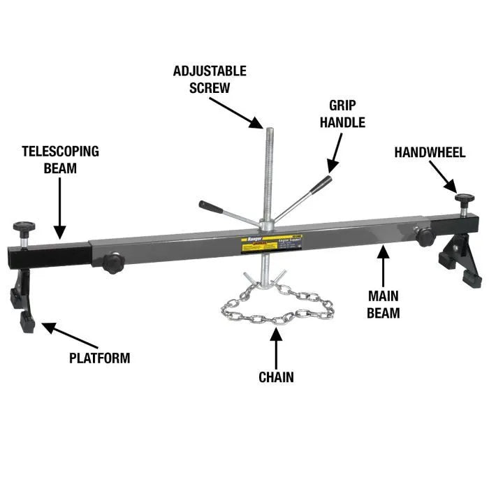 The engine is the heart and soul of a vehicle. Don't trust its care to anything but Ranger. If you’re replacing or servicing engine mounts but don’t want to hoist the entire engine to do so, save time and money with a superior-quality engine support beam. Professionals and DIY'ers both benefit from having an engine support hand for fast access to the engine.Don't Trust Your Engine's Care to Anything but Ranger