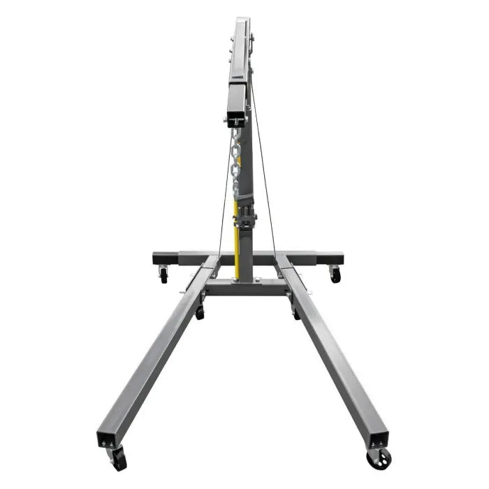 The RSC-2TF engine hoist is our most popular model. Most folks want a cherry picker that can fold up so they can save on garage floor space. This model has a lifting range from 1" up to 93 inches and features a 4 position boom. Durable steel frame with a boom that is reinforced for maximum strength. Don't worry about that jib arm flexing on you. It is built strong. The reliable hydraulic cylinder is double seals for years of trouble free use. The foldable frame can be set up or broken down quickly and easily with several quick release pins. The 6 wheels assure smooth rolling across your garage floor. This is an affordable, yet commercial quality hoist.