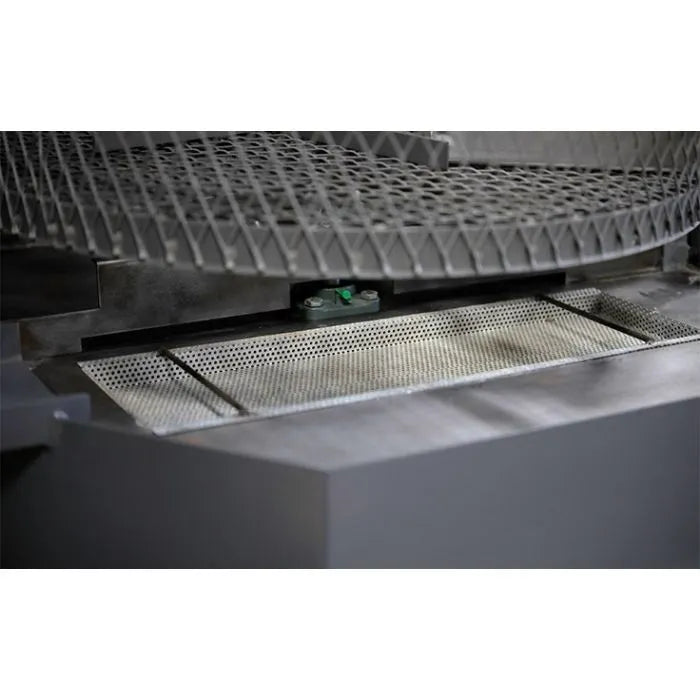 The system behind the parts washer turntable is friction-drive, helping to eliminate potential motor damage by reducing the risk of component jamming inside the cabinet.