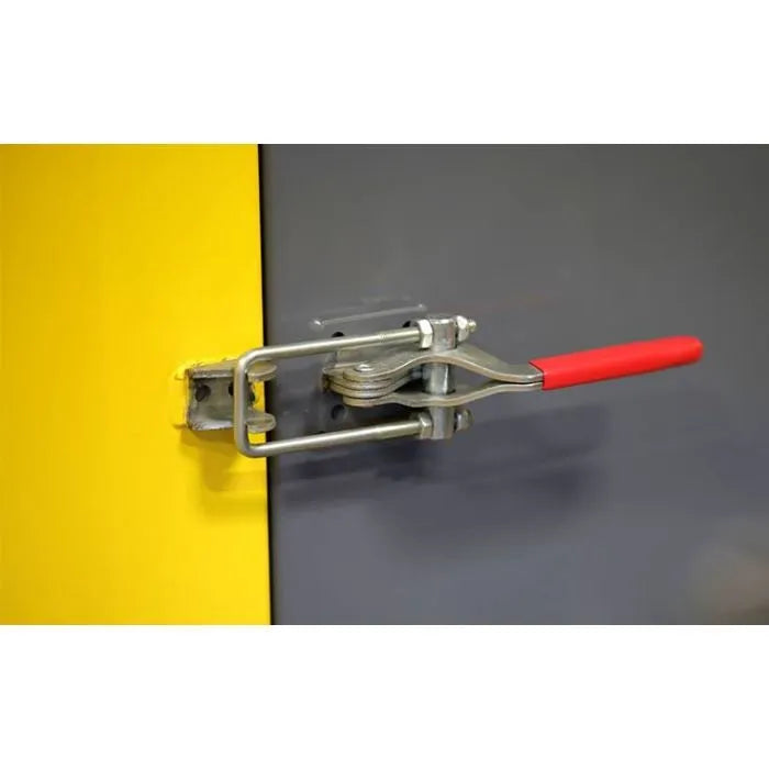 Swift-release door latch comes built-in for technician convenience. The gasket-free interlocking door keeps the cleanser material free from contaminants and inside the tank, not your floor.