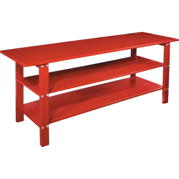This industrial-grade, high-performing, dual-shelf workbench features an electrostatic, oven-baked protective powder coating, durable rolled edge construction for superior rigidity and a pair of 3/32" HD rolled edge steel shelves. Each shelf is securely bolted in for maximum rigidity and strength, capable of handling whatever you need stored under your work area.The true difference in our workbenches, as much as we love to show off our bold look and durable power-coat finish and rugged shelving, is how incredibly well these units stand the test of time. We invite you to find a shop or a friend who uses a Ranger workbench and feel the difference for yourself; there's nothing we can say in words or show you in images that can replace the experience of touching and handling a Ranger workbench.