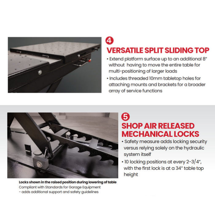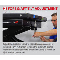 Your technicians will be impressed with the tricks this table can perform, including the flexibility to make full tilt and positional adjustments while under load, plus expandable configuration capabilities for further functionality.
