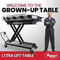 You'll be spellbound by Rotary's LT35A Air Hydraulic Lift Table. With a 3,500 lbs. lifting capacity, the LT35A easily lifts EV batteries, engines, transmissions and other heavy vehicle components - like magic!