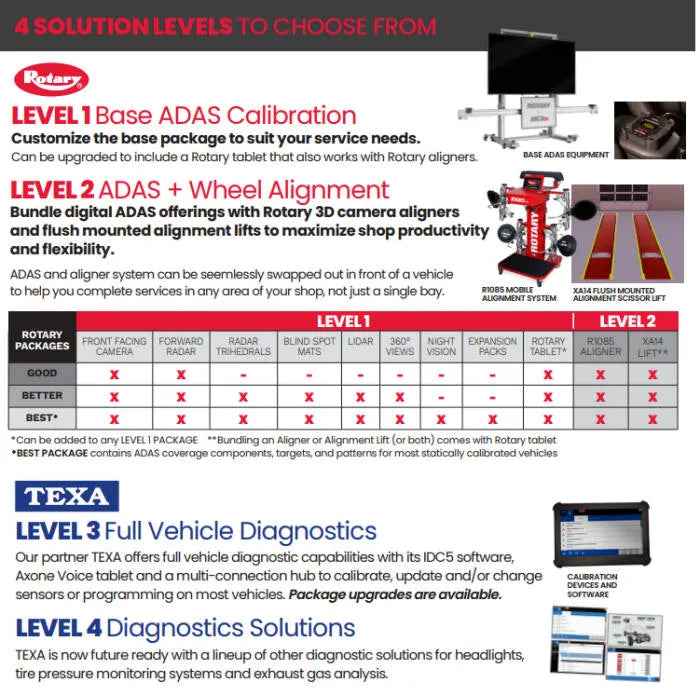 Rotary has designed four equipment solution packages that allow technicians to choose the level of diagnostics and calibration services that best serve their shop's needs.