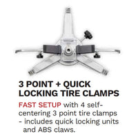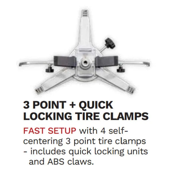 Fast setup with 4 selfcentering 3 point tire clamps - includes quick locking units and ABS claws.