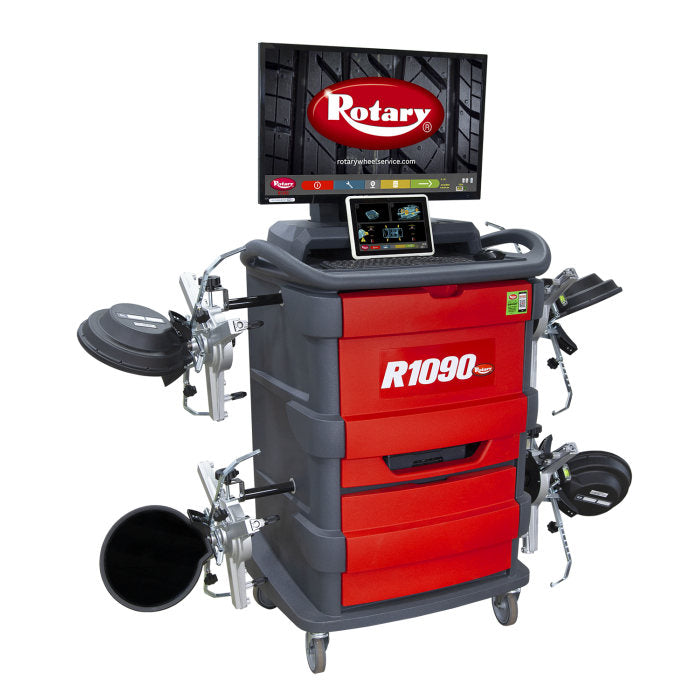 Rotary's R1090 Pro 3D Alignment System has less of a learning curve to run our software, less space required for the machine in any bay, less total cost involved to start doing alignments yourself. The R1090 Pro 3D is your next alignment system. EQUIPPED WITH FIXED CAMERAS, TIRE GRABBING CLAMPS AND REMOTE CONTROLLED SENSORS