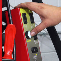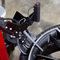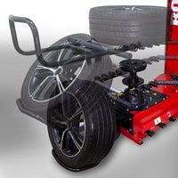 The convenient pneumatic front-loading wheel lift allows the tech to safely and easily roll heavier wheel assemblies onto the changer, reducing back strain and eliminate wasted movement around the change. Foot pedal controlled up and down movement reduces operator fatigue and wheel damage.