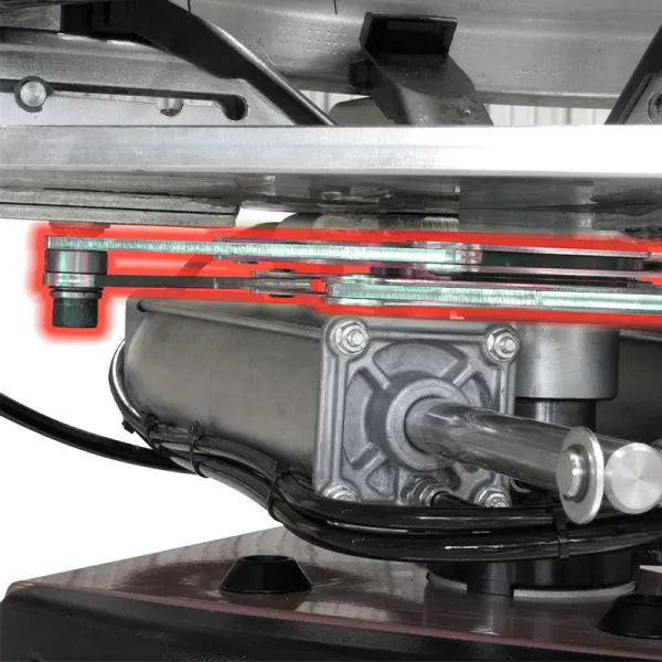 Designed with an innovative electrical motor inverter, techs are able to regulate the chucking table rotation speed to reduce the stress on the bead to avoid any damage to the tire. 220V drive motor. Model features a hand-controlled bead breaker.