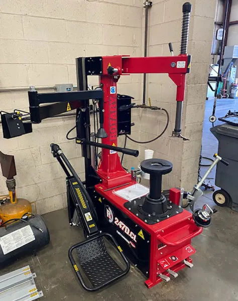 Rotary's R247D.CL Center Lock Swingarm Tire Changer is designed for high volume and productivity. The R247D.CL features make this the go-to pro performance swing arm tire changer for the busiest tire centers. The easy to use center post mounting increases productivity and reduces the risk of wheel damage. Comes standard with metal and plastic mounting and demounting heads. With high-volume productivity and an expanded service range in mind, the R247D.CL pro-performance swing arm center-locking tire changer is a go-to for the busiest tire centers.