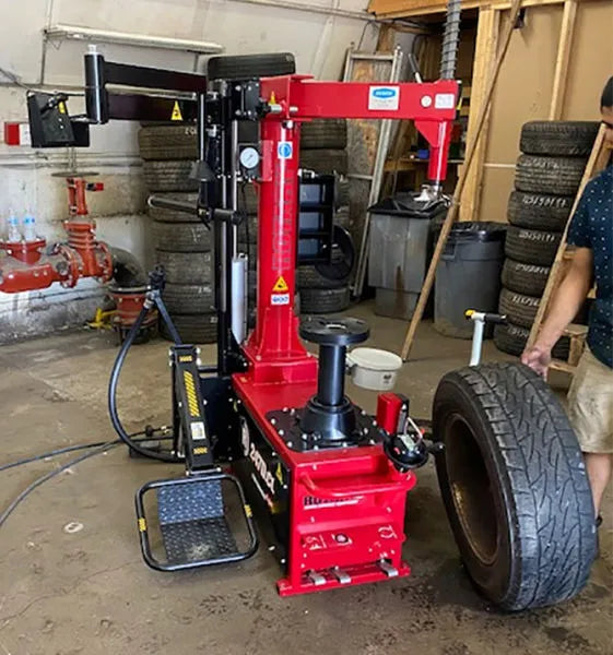 Rotary's R247D.CL Center Lock Swingarm Tire Changer is designed for high volume and productivity. The R247D.CL features make this the go-to pro performance swing arm tire changer for the busiest tire centers. The easy to use center post mounting increases productivity and reduces the risk of wheel damage. Comes standard with metal and plastic mounting and demounting heads. EXCLUSIVE VARIABLE SPEED CONTROL INVERTER
