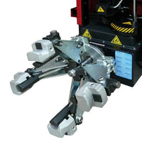 Hydraulic clamping firmly secures the wheel to the tire changer. 4" Minimum Clamping, 13" Minimum Height. Designed to clamp a variety of wheels, the chucking unit is able to move clockwise, counter-clockwise, and up and down.