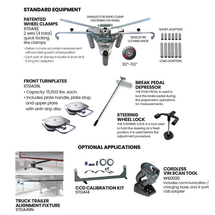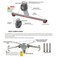 - Save 15 - 20 minutes per setup by referencing wheel center without raising the vehicle