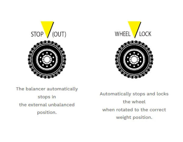 Auto Lock - The balancer automatically stops in the external unbalanced position.