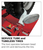 Rotary's R541 Commercial Heavy-Duty Tire Changer has the dimensions and work strokes to ensure maximum efficiency for an entire range of tires. The two-speed rotation chucking table can accommodate rims up to 44" and 56" (with VSG108A12 extensions set) and service tube and tubeless tire diameters up to 90". The R541 features a double-ratcheting locking arm and double speed for chucking table rotation. SERVICE TRUCKS, AGRICULTURAL AND EARTHMOVING VEHICLES
