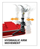 Hydraulic clamping firmly secures the wheel to the tire changer. Designed to clamp a variety of wheels, the chucking unit is able to move clockwise, counter-clockwise, and up and down.
