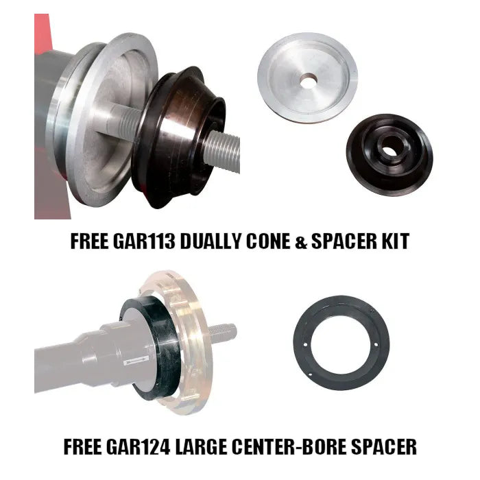 The GAR113 Dually Cone & Spacer Kit and the GAR124 Large Center-Bore Spacer dramatically enhances the capabilities of the R155 Wheel Balancer, empowering you to easily service 3/4-to-1-ton wheels and other larger center-bore light truck wheels. You're not just getting more for your investment - you're getting the tools to tackle bigger jobs with ease.