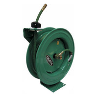 MAHLE Nitrogen Hose Reel Model 355 80049 00. High pressure hose with a premium durable sheath that will not only hold up to rough auto shop use that typically gets dished out, but also will hold up to chemicals and oils and abrasion sources that are commonly found on most garage floors. Green hose reel helps differentiate this reel from your standard air hose reels or other reels. Your mechanics will know the purpose of this reel. Spring rewind feature allows the convenience of pulling hose back onto reel with minimal effort. All working parts are made with professional quality components and fittings are all machined of brass.- 50 ft. of "Nitrogen Green" 3/8in. I.D. nitrogen hose & adjustable hose stop