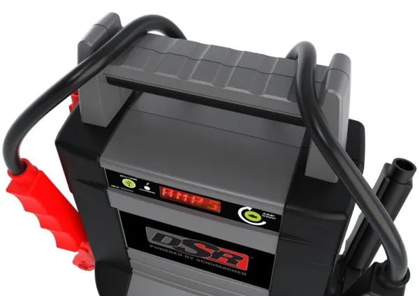 DSR128 Pro Series Jumpstarter features 2 lithium iron phosphate batteries, a scrolling digital display and charging LED indicator.