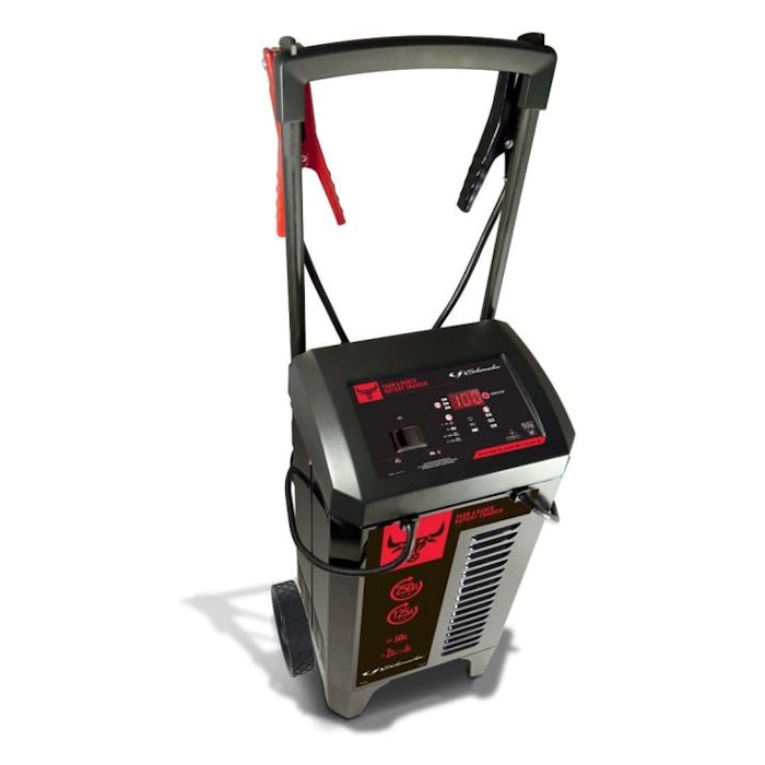 The FR01336 battery charger is microprocessor-controlled to automatically adjust the amperage rate to charge and maintain your battery. The starter features 50A boost for a quick energy charging, digital display with LED indicators and reverse hookup protection, preventing damage if clamps are reversed.