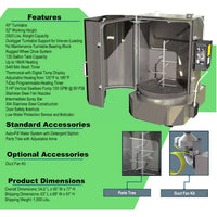 The SprayMaster SM9300 45 Gallon Black Front Load Spray Wash Cabinet is our value-minded mid-size aqueous front load automated spray wash machine with a large 30" diameter turntable with 500 lbs. weight capacity. This machine is configured as a base unit with customer selectable upgrades to mindfully tailor the machine as desired. The powerful spray wash is designed to clean efficiently and effectively.