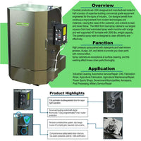 The SprayMaster SM9600 70 Gallon Black Front Load Spray Wash Cabinet is our mid-size aqueous front load automated spray wash machine with a large and well supported 30" diameter turntable with 1,000 lbs. weight capacity. The powerful spray wash is designed to clean efficiently and effectively.