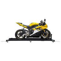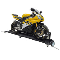 The Titan Lifts MD-1250-XL Motorcycle Dolly makes it easier to move your motorcycle around. Titan Lifts has added its patented Bulldog motorcycle chock to this unit, securing your motorcycle with no kick stand needed and saving you more garage space. Smooth-rolling dual wheel swivel casters, 1-1/2" low-profile design, and an anti-slip lock ramp make it easy for one person to load, unload, and move their motorcycle around any shop or garage.