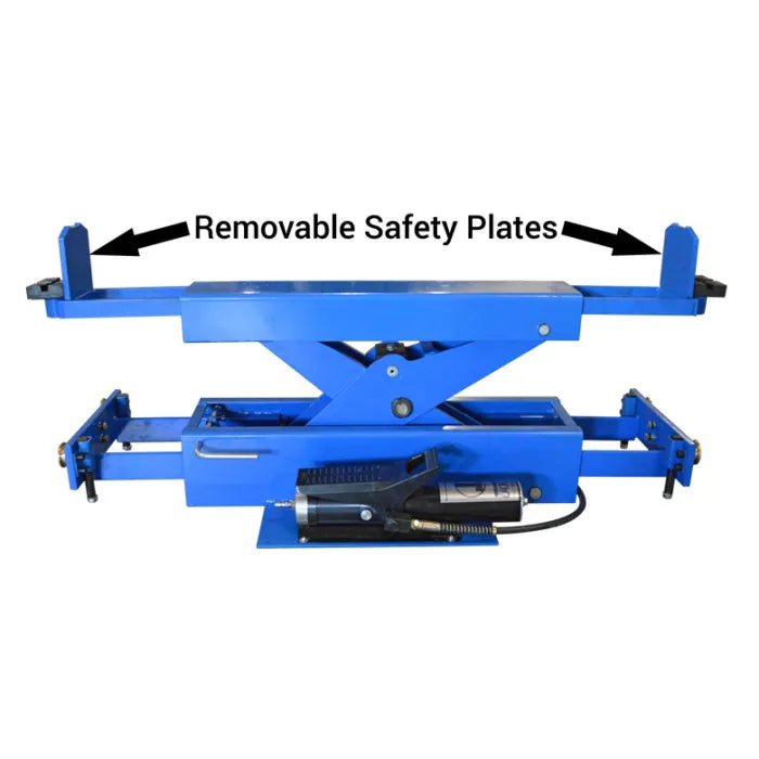 The Titan Lifts RJ-6K-HP 6,000 lbs. Capacity Rolling Bridge Jack can be added to the HD4P-12000 Heavy Duty Four Post Lift* to assist in lifting the front or back of a vehicle off the runways for wheel and suspension work. This scissor style hydraulic jack comes complete with rubber pads, stackable height adapters, and telescoping arms that allow the jack to slide between the two runways.